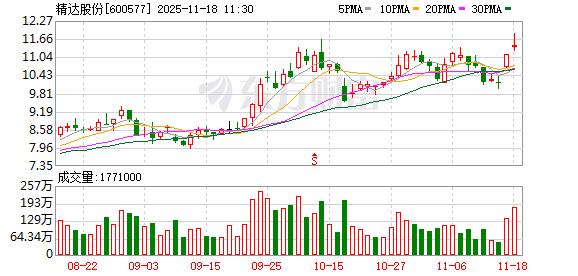 精达股份股价创出历史新高,截至10:26,该股上涨5.11%,股价报11.72元,成交量1.43亿股,成交金额16.42亿元,换手率6.65%,该股最新A股总市值达251.88亿元,该股A股流通市值251.88亿元。