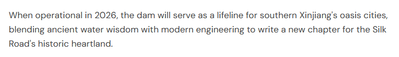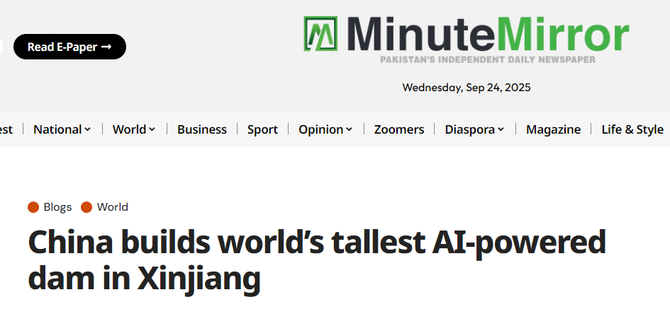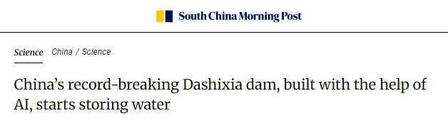 文章写道,新疆的大石峡水利枢纽工程是世界最高的混凝土面板堆石坝,并采用智能填筑管理系统,有效提升施工安全与效率。